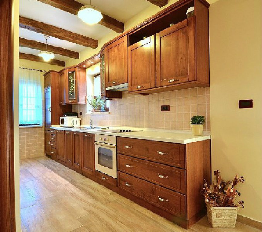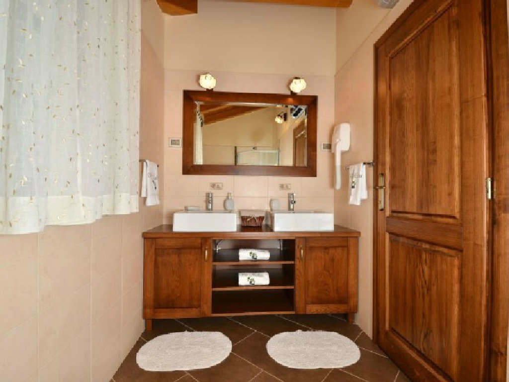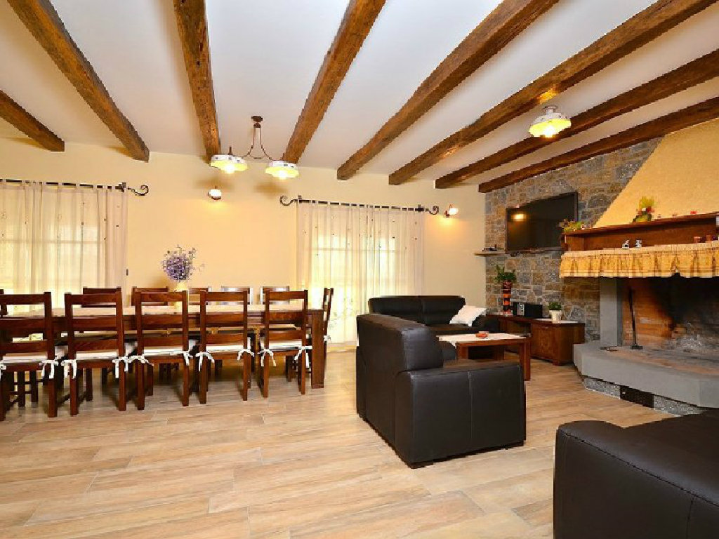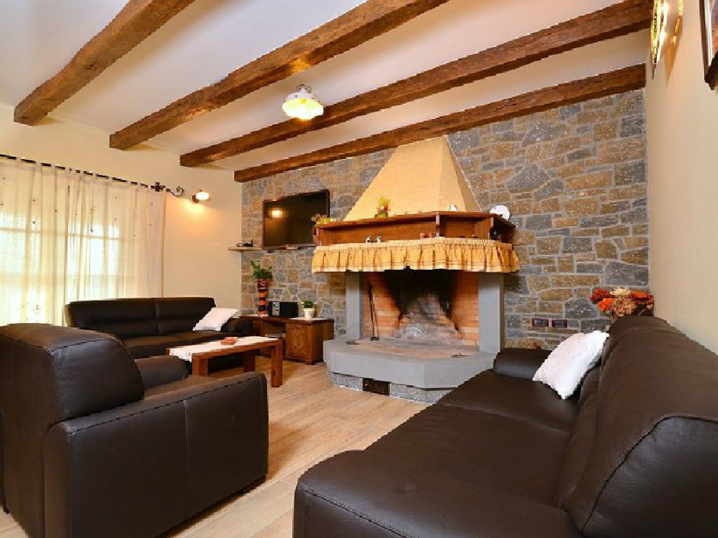 Več pri samom ulasku u interijer, kovana ograda i kameno stepenište ostavljaju vas neodlučnim kojim putem krenuti, no istovremeno privući će vas svijetlost. Upravo će vas ta svjetlost dovesti do prostranog dnevnog boravka s drvenim, masivnim stolom za dvanaest osoba i nekada nezaobilaznim u istarskih kuća - ognjištem. Dok otvor s lijeve strane vodi u moderno opremljenu kuhinju, prednji vas "izvlači" na terasu odakle pogled puca na stanište bijelog tartufa, jezero Butoniga i osam pitoresknih, poviješću bogatih mjestašca: Zrenj, Oprtalj, Motovun, Zamask, Grimalda, Draguč, Gračišće i Vrh. Na istom se katu nalazi i prostrana spavaća soba za dvije osobe s vlastitom kupaonom i izlazom na terasu.