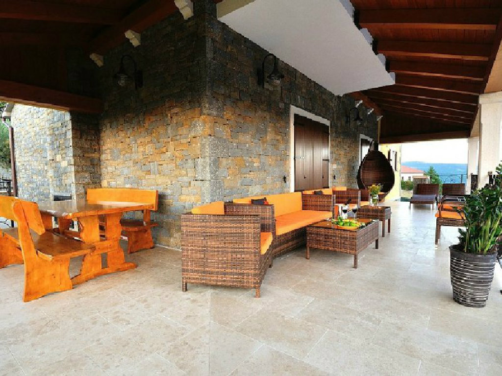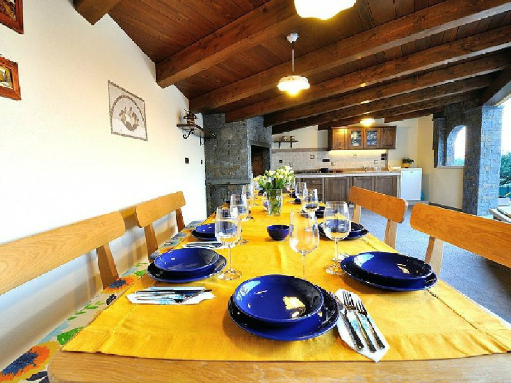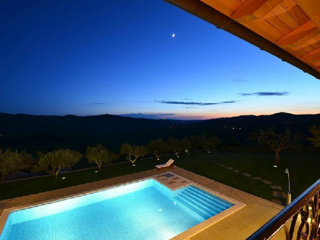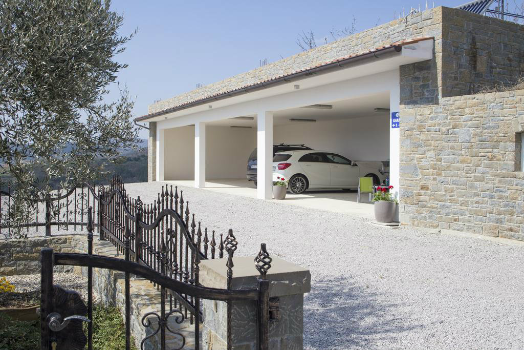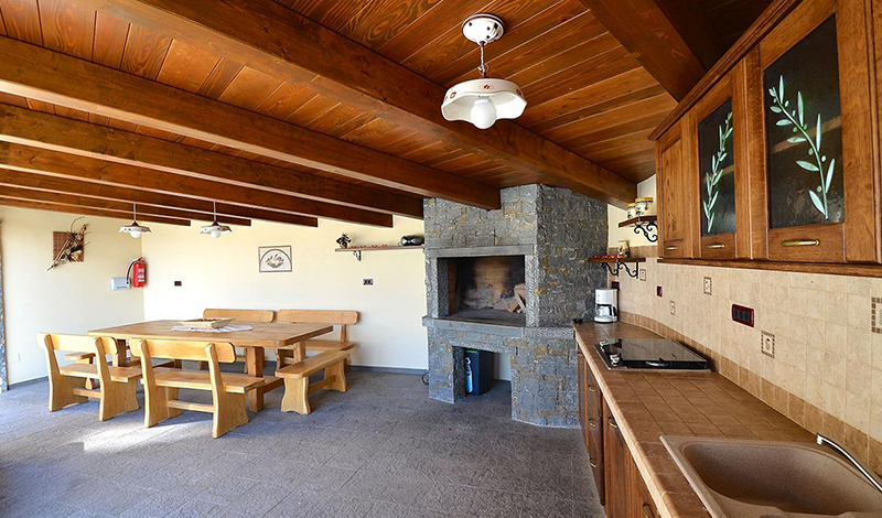 Poželite li osvježenje u toplim ljetnim mjesecima, tu je i vrtni bazen površine pedeset kvadratnih metara s mogučnošću grijanja te s hidromasažnim pumpama. Sunčeve zrake možete hvatati na jednoj od dvanaest ležaljki, a poželite li manje osunčano mjesto, pobjegnite u hladovinu jedne od maslina. Dok bezbrižno uživate u pogledu na jezero i okolne stoljetne šume vaši najmlađi će se zabavljati na klackalici ili ljuljački. Na raspolaganju su vam i četiri bicikla. U vrtu se nalazi i natkrivena kuhinja opremljena kaminom, kuhalom na plin, sudoperom, frižiderom i stolom za dvanaest osoba. Ovdje gosti mogu kušati istarske specijalitete koje će pripremiti sami ili, pak, pod stručnim vodstvom.