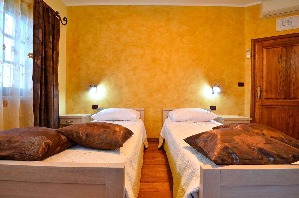 Drugi je kat predodređen za spavaće sobe. Ima ih tri: Belica, Buža, Karbona. Svaka nosi naziv jedne od autohtonih istarskih sorti maslina. Osim po nazivu, razlikuju se po stilu namještaja i boji zidova. Dok je jedna žuta, druga je narančasta, a u trećoj su zidovi boje masline! Svaka od njih ima svoju kupaonicu s dva zasebna lavandina, namještaj od masivnog drva, kao i hrastov pod, dok Belicu još krasi i terasa.