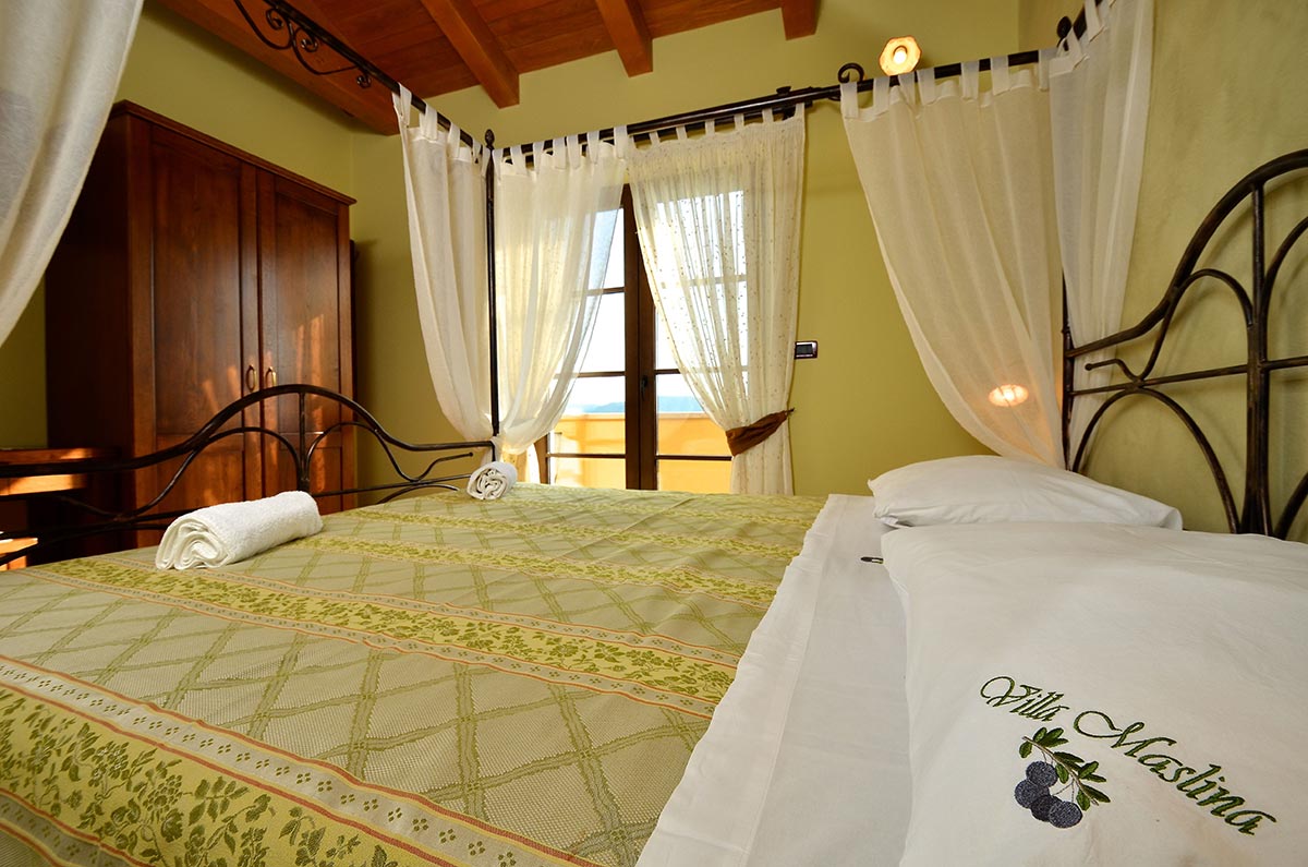 U prizemlju je smještena i najveća, ujedno i peta spavaća soba Ville Maslina. Riječ je o spavaćoj sobi za četiri osobe. Kao i ostale, ima svoju kupaonu. Iz nje se može direktno u vrt.