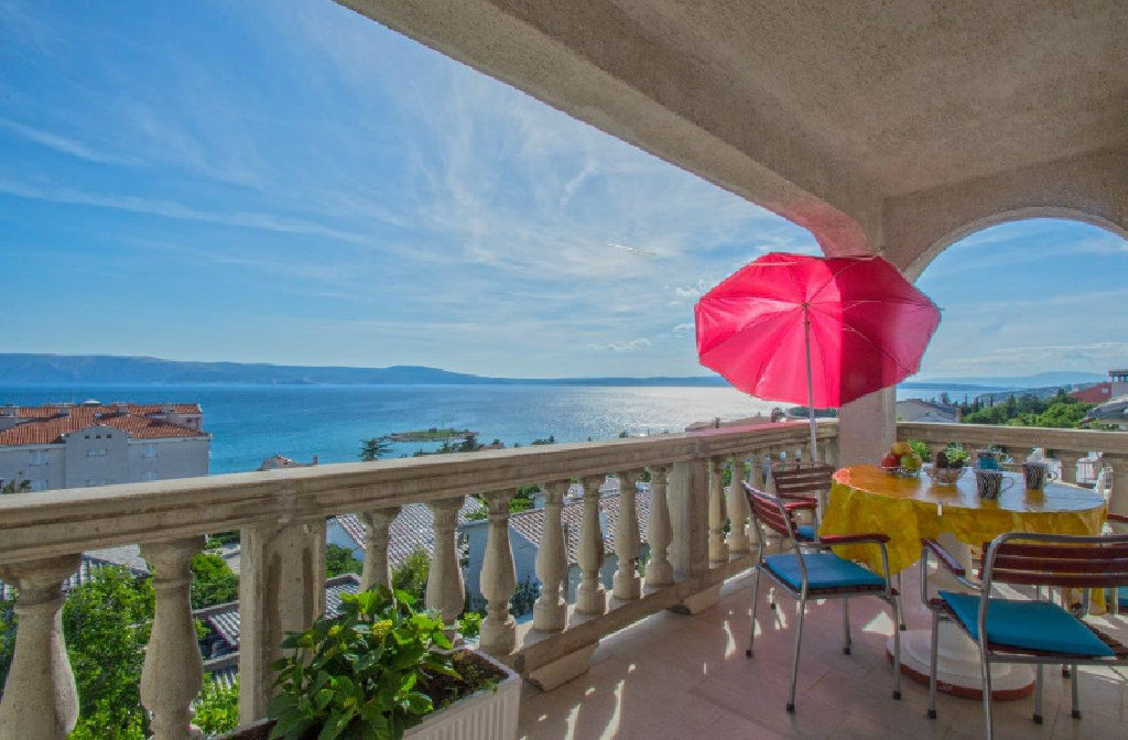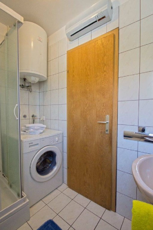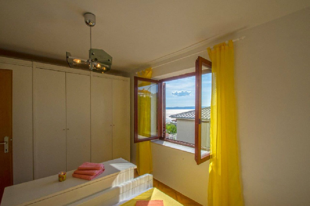 Ima kupaonicu s tuš kabinom, veliki balkon s prekrasnim pogledom, pogodno za djecu, blizina plaže, parking uz kuću, grill, wi-fi, posteljina, ručnici...