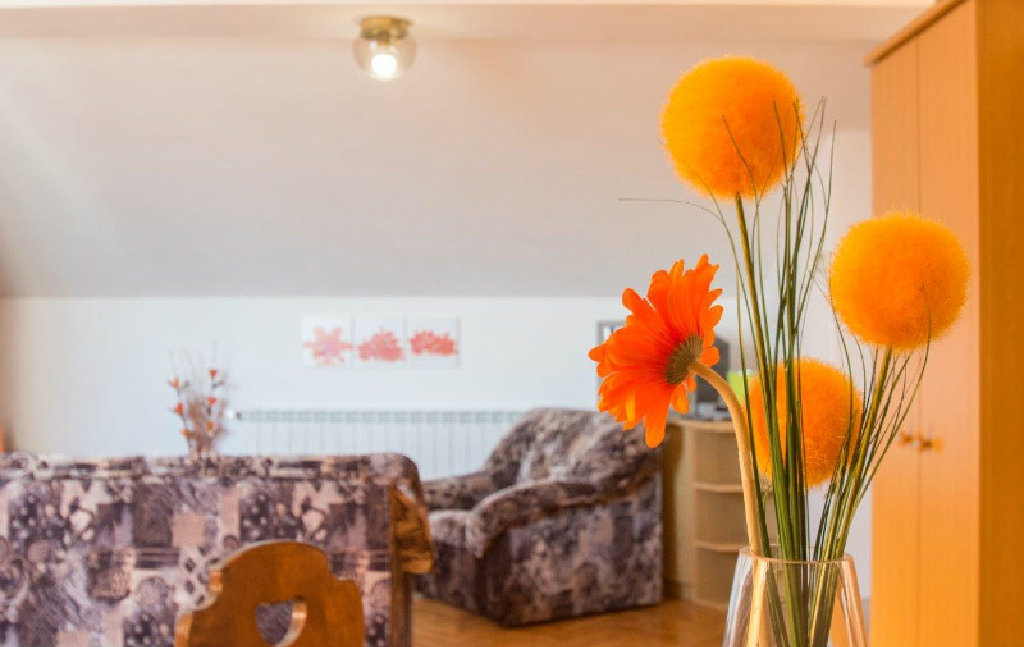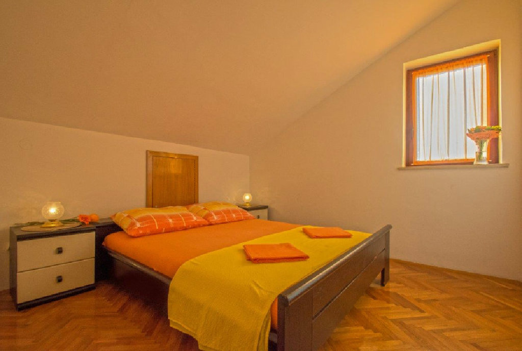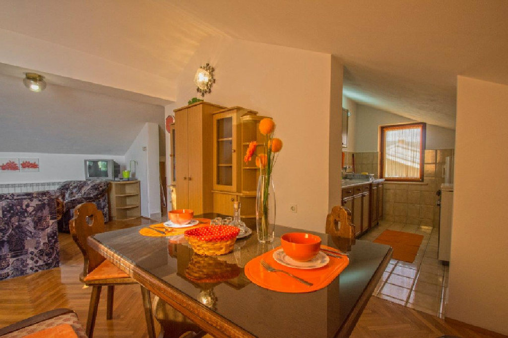 Apartman s dvije sobe sa bračnim ležajem i pomoćni ležaj u dnevnom boravku.