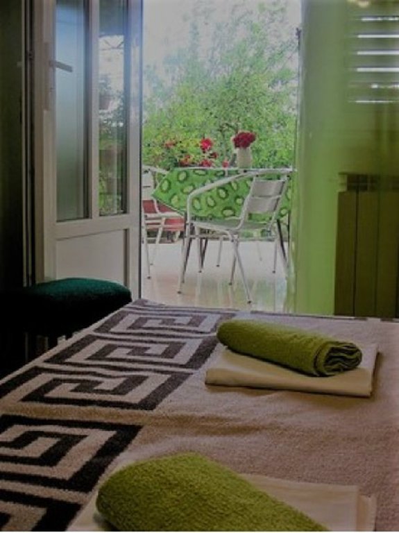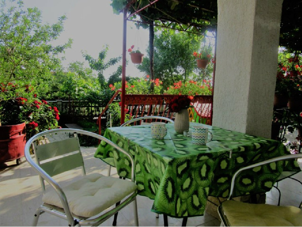 Ima kupaonicu sa kadom i posebnim wc-om, velika terasa s prekrasnim pogledom na vrt i more, blizina plaže, parking uz kuću, grill, Wi-Fi, posteljina, ručnici.