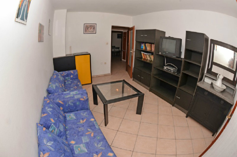 Vrlo komforan apartman koji se sastoji od dnevnog boravka sa 2 kauča na razvlačenje, 1.spavaća soba s bračnim krevetom, 2.spavaća soba sa 2 kreveta, zasebna kuhinja sa stolom za ručavanje, kupaonica, velika terasa s tendom.
