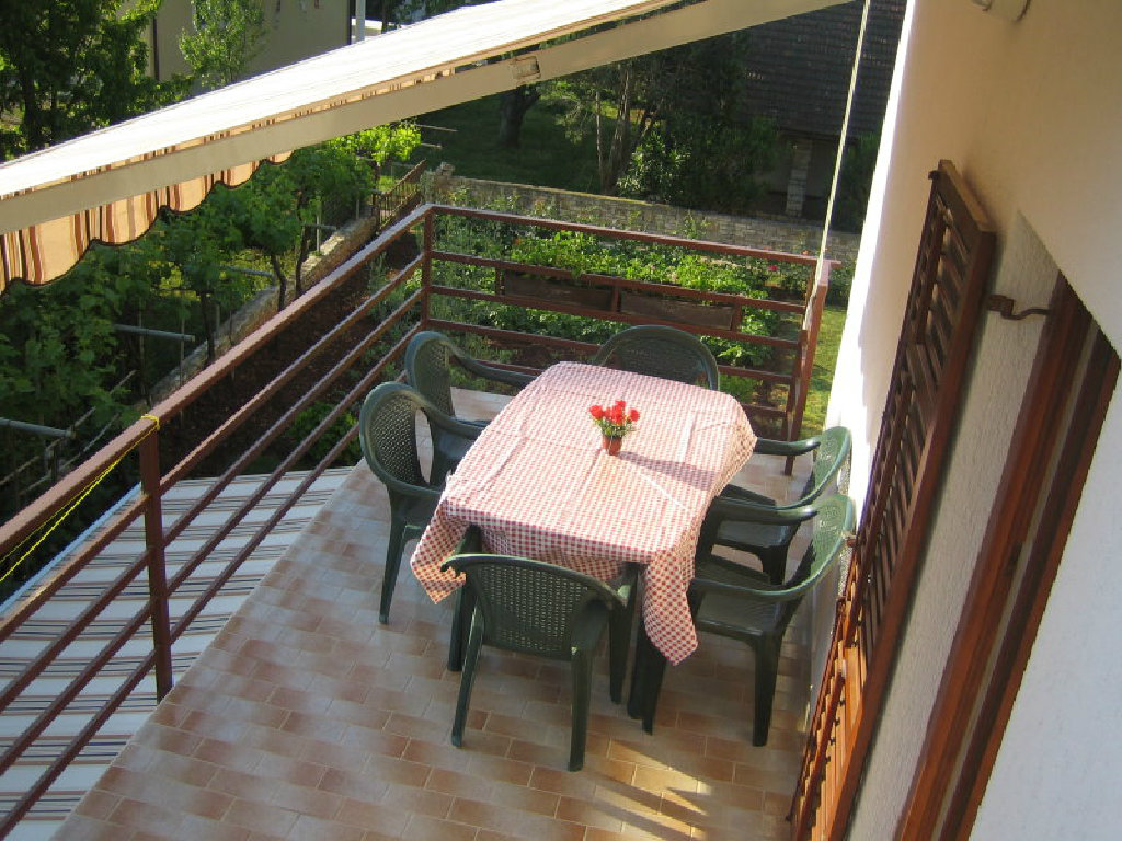 Svaki apartman ima svoj poseban ulaz sa vanjskim prostorom stolom stolicama i suncobranom gdje se može jesti i boraviti.